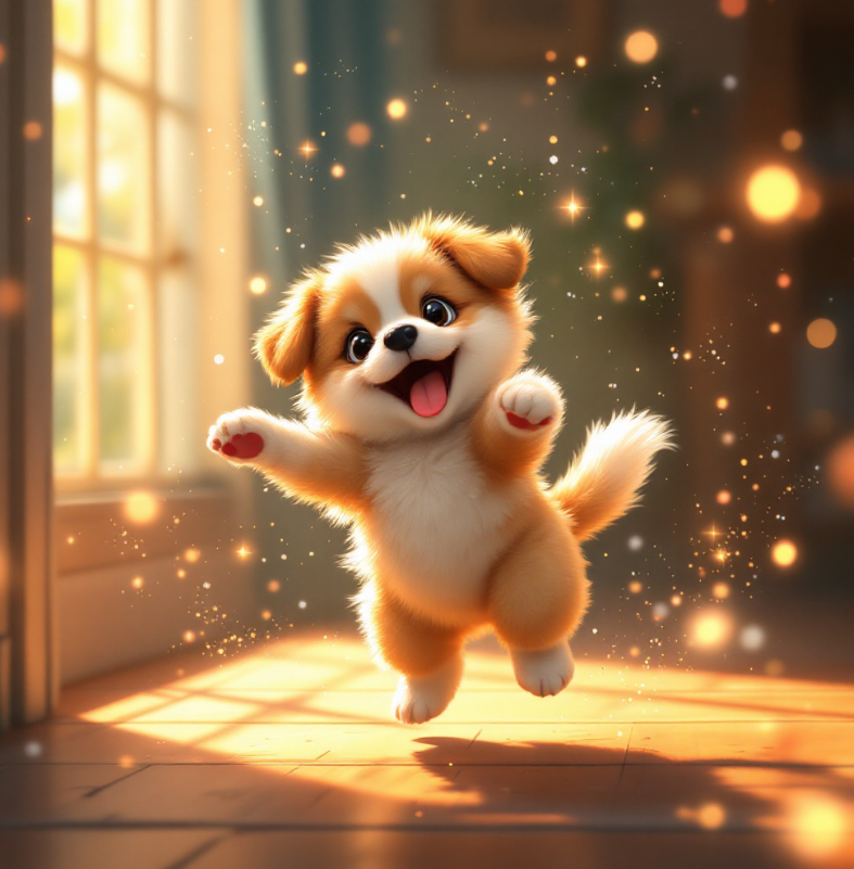 "강아지가 춤추는 꿈은 순수한 기쁨과 성공을 상징합니다. 특히 무의식이 감지한 긍정적 변화나 기회를 알려주는 신호일 수 있습니다." - 심리학자